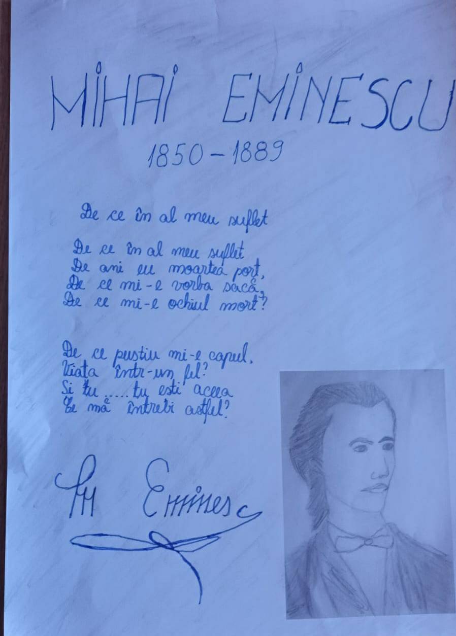 Ziua de, 15 ianuarie 2024, la Biblioteca Municipală Drăgășani, a fost dedicată în totalitate activităților programate pentru sărbătorirea Zilei Culturii Naționale și a lui Mihai Eminescu, la 174 de ani de la nașterea sa. Elevii clasei a V-a C, de la Școala Gimnazială ”Nicolae Bălcescu”, coordonați de prof. Cristina Călugăroiu, au recitat poezii de Mihai Eminescu, au urmărit un film tematic despre biografia poetului și au expus câteva desene inspirate tot din poeziile poetului.
